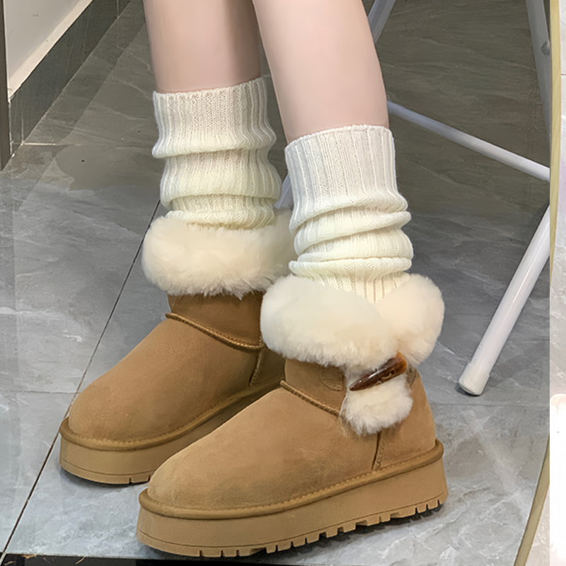 厚底棉鞋 热风加绒雪地靴女鞋 保暖短筒靴子户外时尚 新款 2025年冬季
