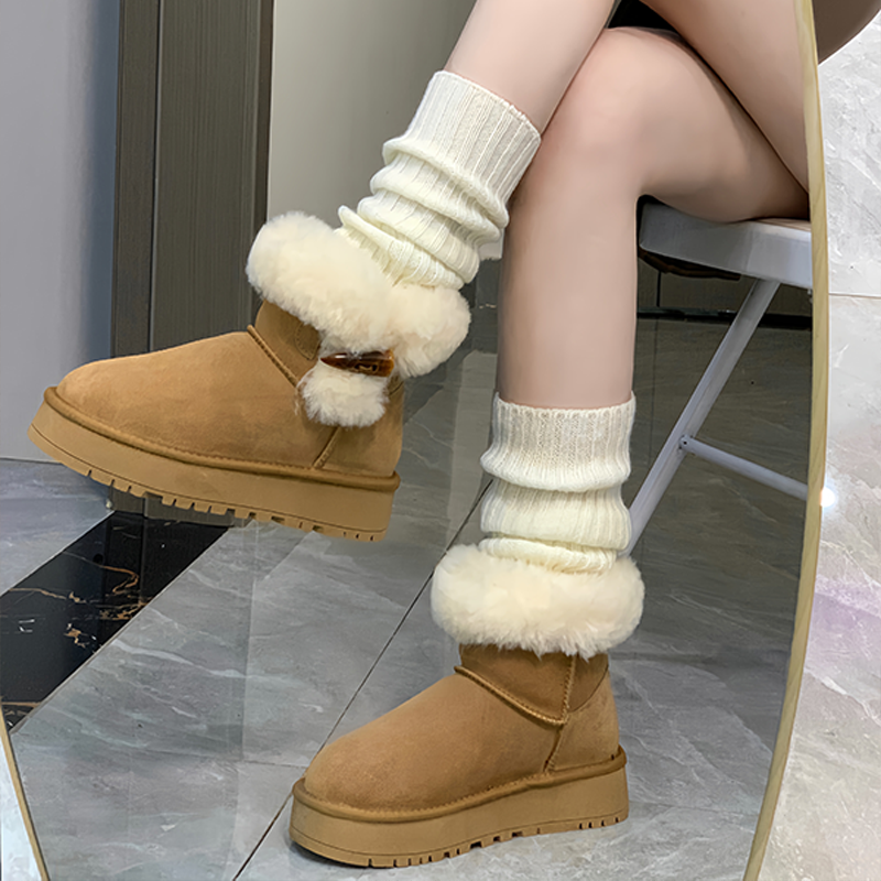 香菇来了 雪地靴厚底棉鞋 骆驼女鞋 保暖时尚 百搭加绒加厚女 新款