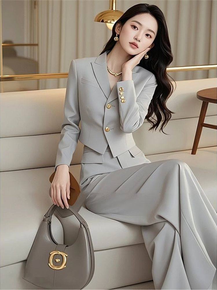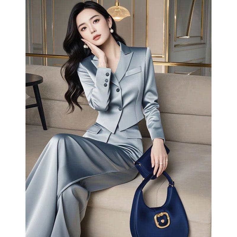 欧货醋酸时髦洋气西装 西服女装 两件套装 职业通勤时尚 春秋2025新款