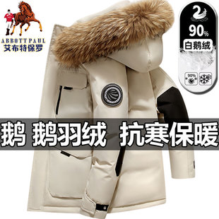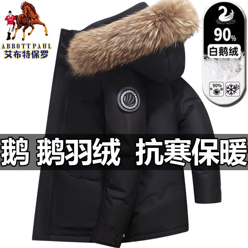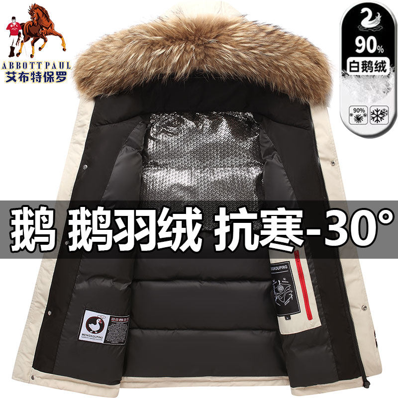 貉子毛领加厚保暖连帽外套 秋冬季 正品 保罗高档白鹅绒羽绒服男女款
