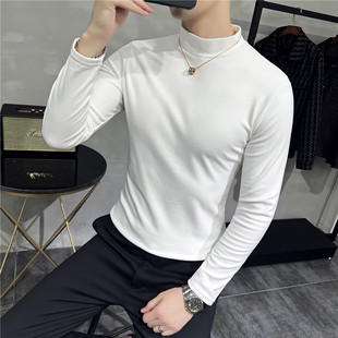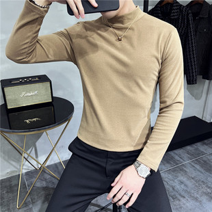 男装 打底衫 秋冬纯色加厚德绒半高领长袖 修身 t恤S号XS码 矮个子小码