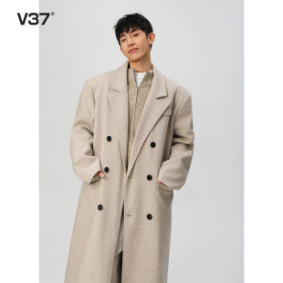 韩版 V37黑色高级感毛呢大衣男款 长款 季 呢子百搭风衣外套 2026春季
