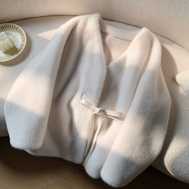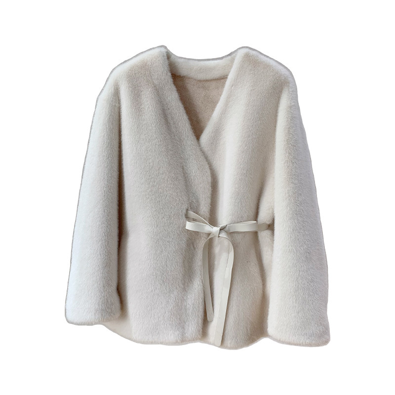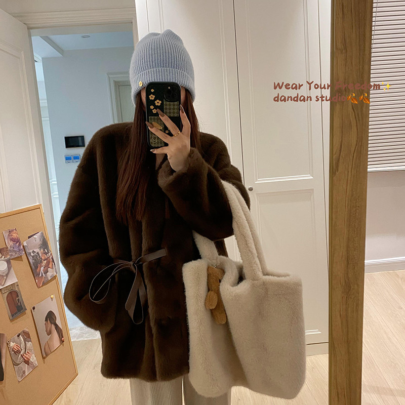 pusumede 气质减龄环保皮草外套女宽松保暖软糯毛绒大衣 绒冬格调
