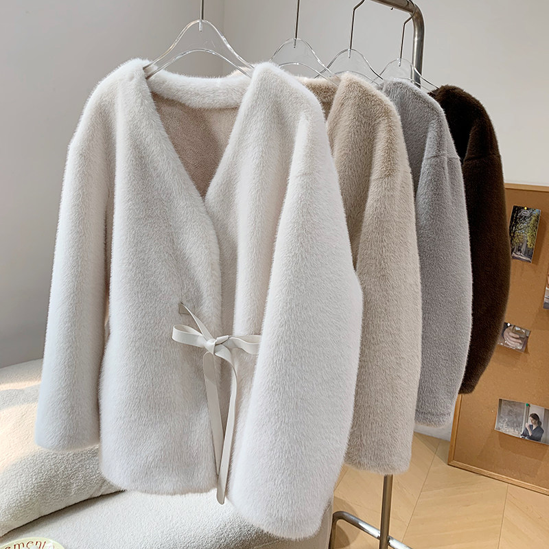BLUEerror 环保皮草女保暖毛茸茸外套冬 仿貂毛翻领毛绒毛毛短款