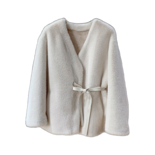 顶版 Narcos小湖羊皮毛一体V领皮草大衣气质简约环保毛宽松外套女