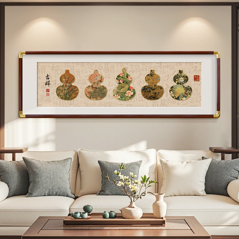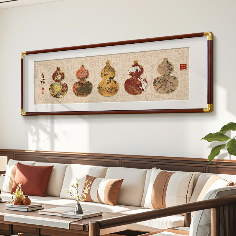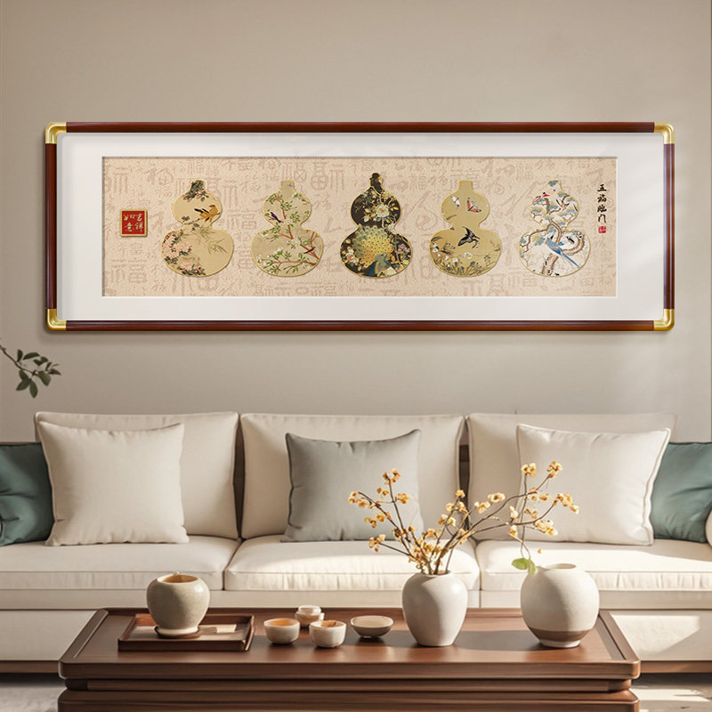饰画葫芦寓意好福禄壁画 饰画茶室禅意装 五福临门挂画新中式 客厅装