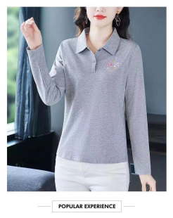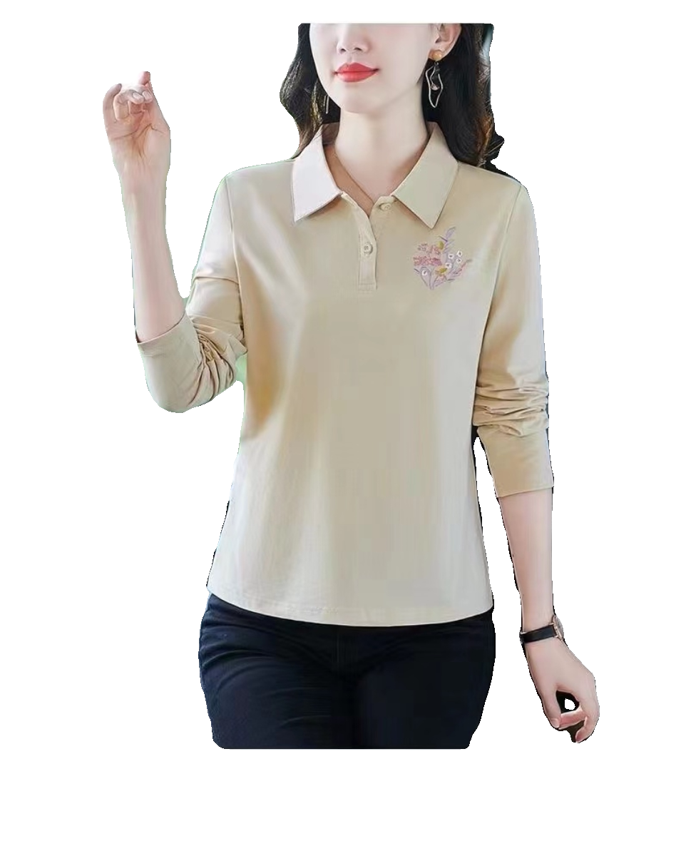 刺绣百搭春装 棉质长袖 气质减龄妈妈polo衫 2026新款 上衣 t恤女春季