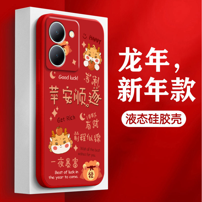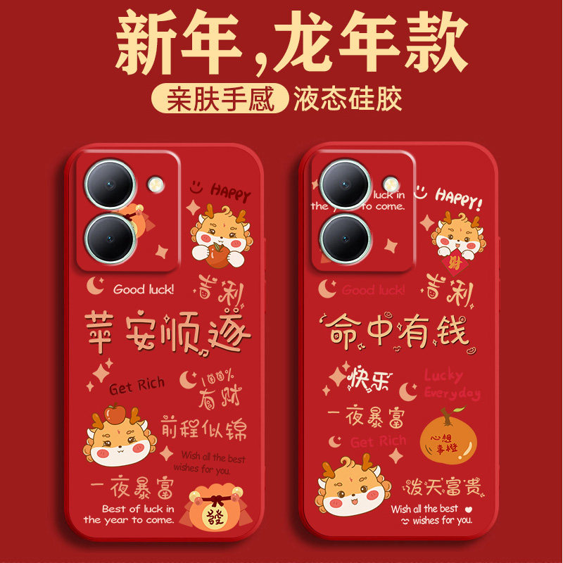 平安顺遂适用vivoy200手机壳y78龙年喜庆y77e新年红色y76s镜头全包y70s液态硅胶y100i高级y55s挂绳y53s保护套