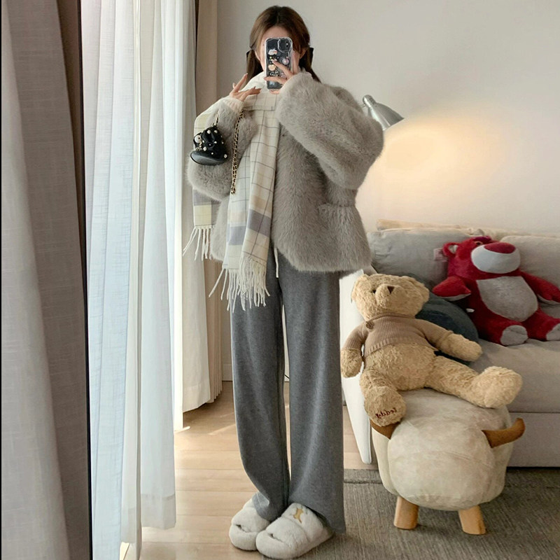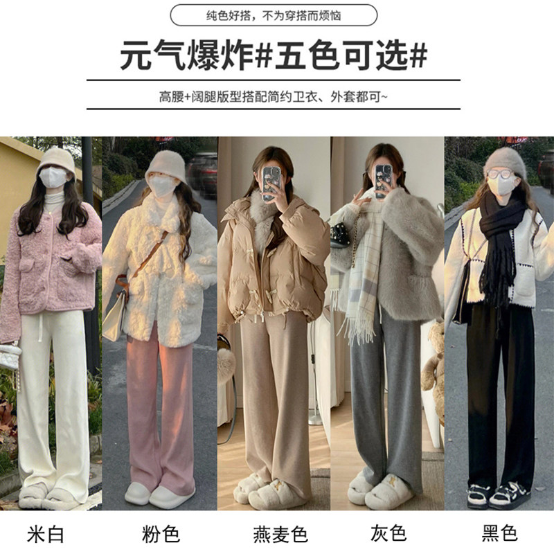 子 宽松显瘦高腰垂感直筒休闲羊绒针织裤 加绒阔腿裤 女秋冬2025新款