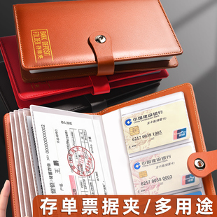 定期存折存单收纳本银行纸质票据存单夹收纳册高端皮36存单收纳本存款 锁发票收纳包专用夹 支票防火防水带密码