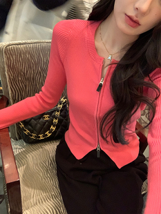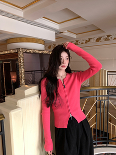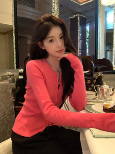 stevens粉色修身 内搭长袖 针织开衫 短款 毛衣上衣 外套女春秋季 alex