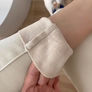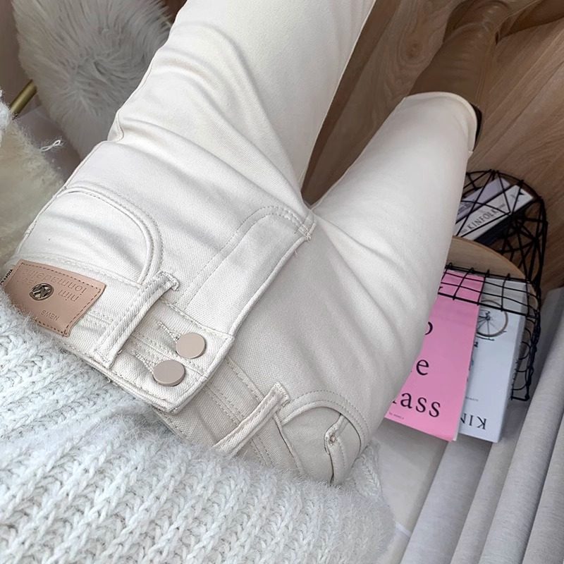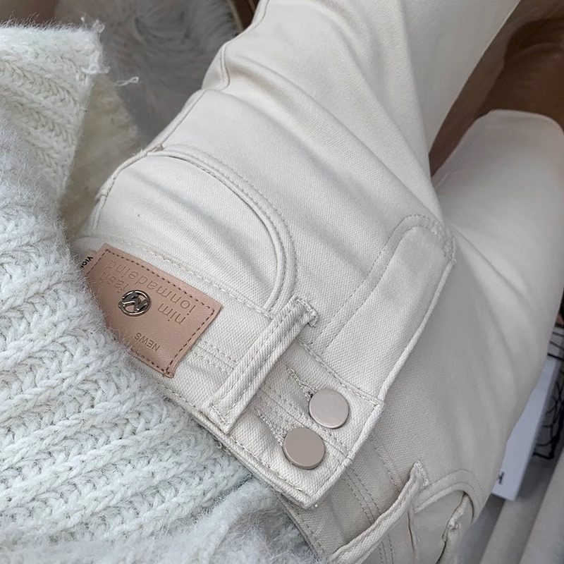 小脚裤 加绒加厚保暖修身 潮 女2025秋冬季 洋气米白色高腰百搭牛仔裤