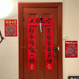 自带背胶对联春联2026新款 马年春节农村大门植绒门联绒布福字门贴