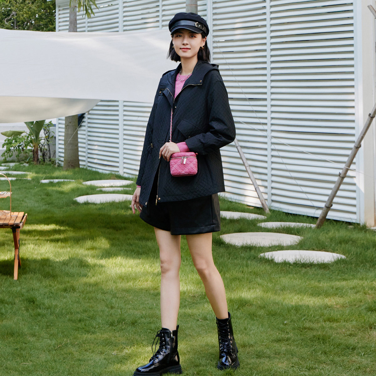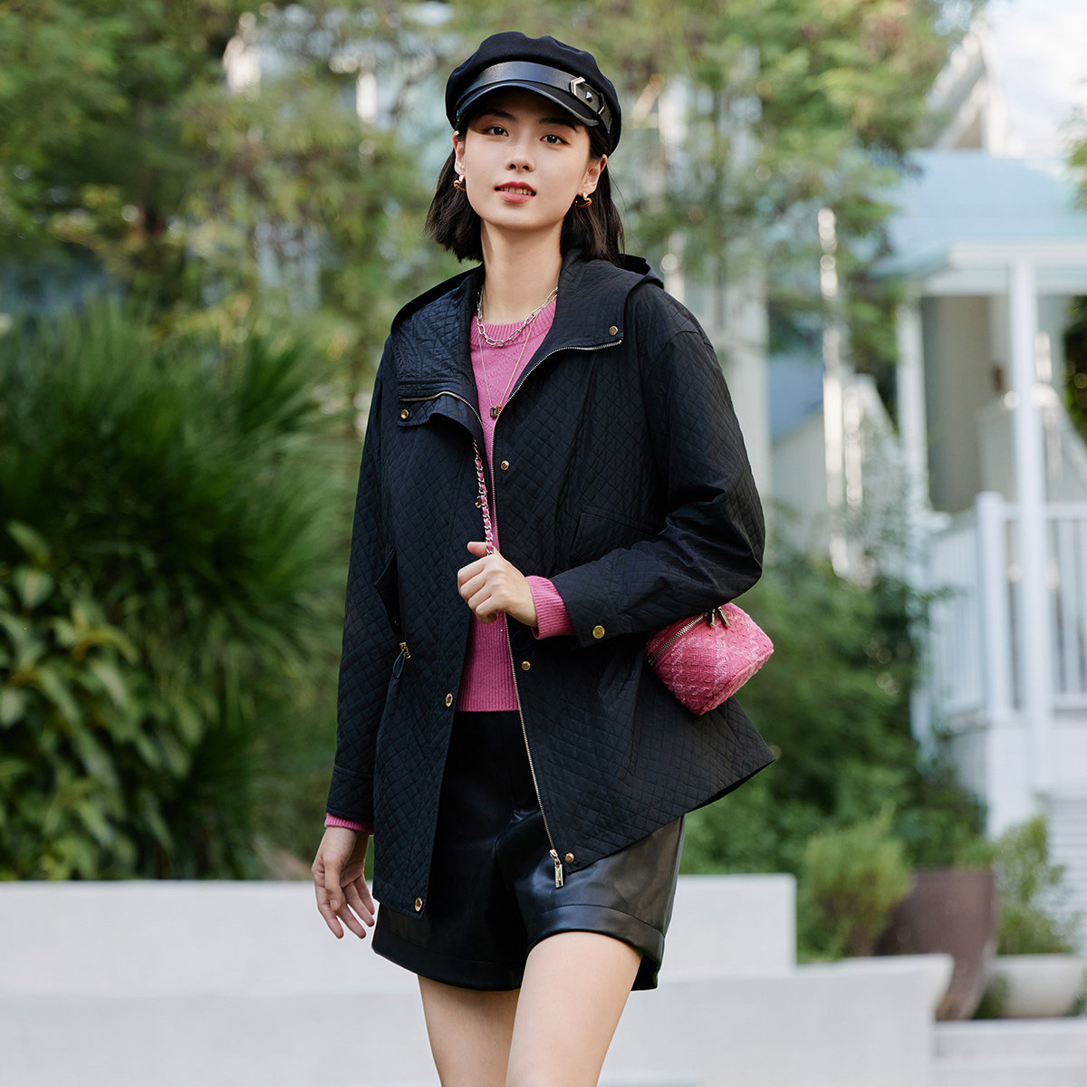 翻领轻薄棉服外套 气质短款 8E10W6150 时尚 歌蒂诗早春专柜新款