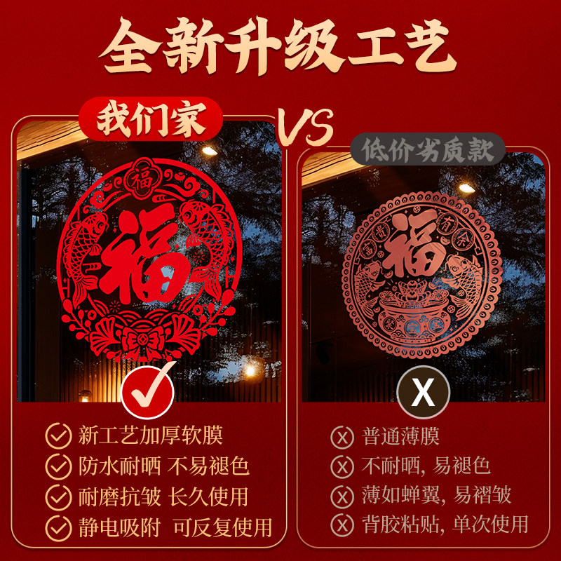 2026新年装 福字窗贴过年窗户玻璃门贴纸 饰品静电窗花马年春节新款