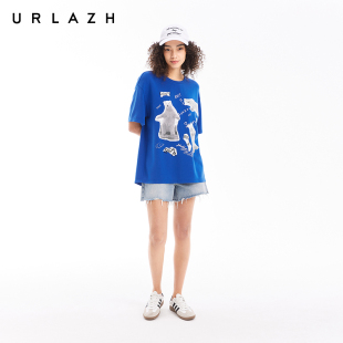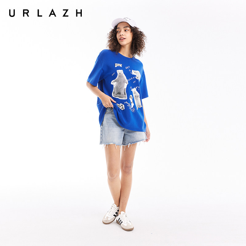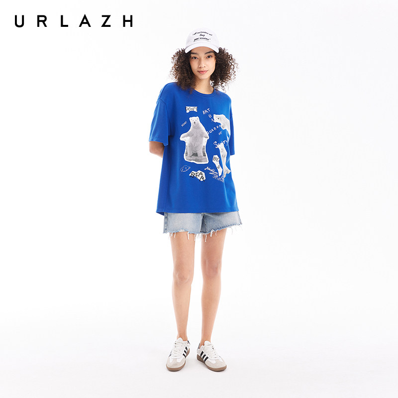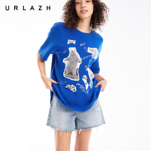 T恤女 克莱因蓝复古休闲宽松圆领萌熊印花短袖 URLAZH有兰夏季 新款