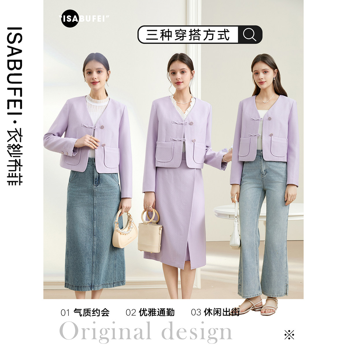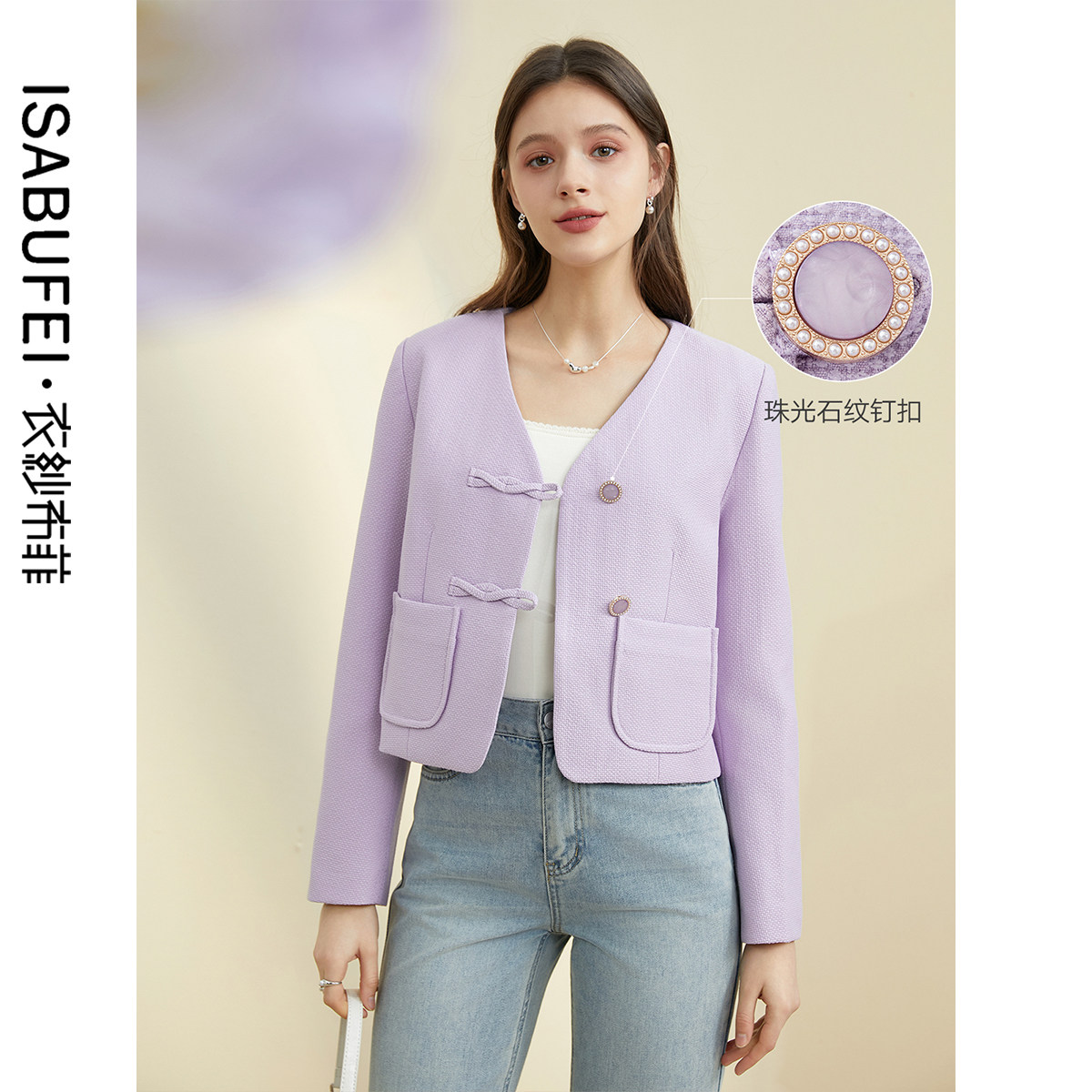 v领国风休闲短款 衣纱布菲柔画 长袖 春秋装 夹克 小香风外套女新款