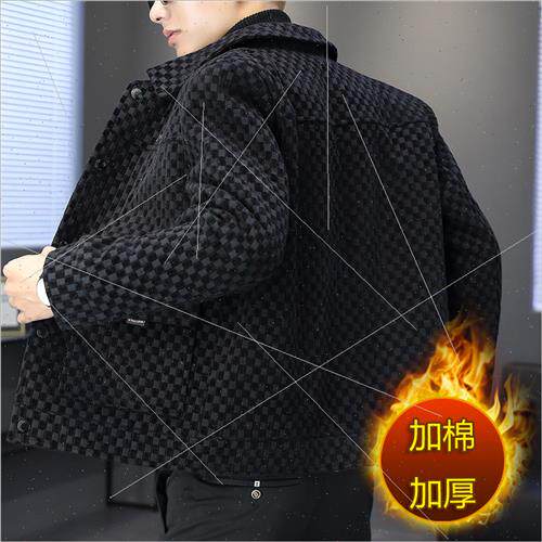 2023 fall lapel jacket cas plaid men new Tweed winter