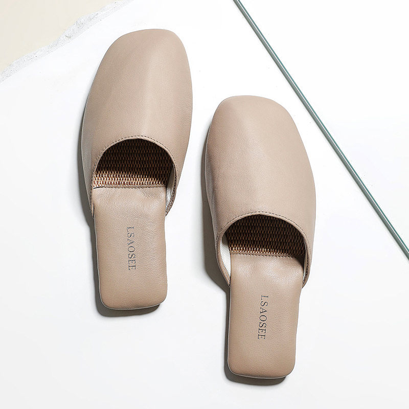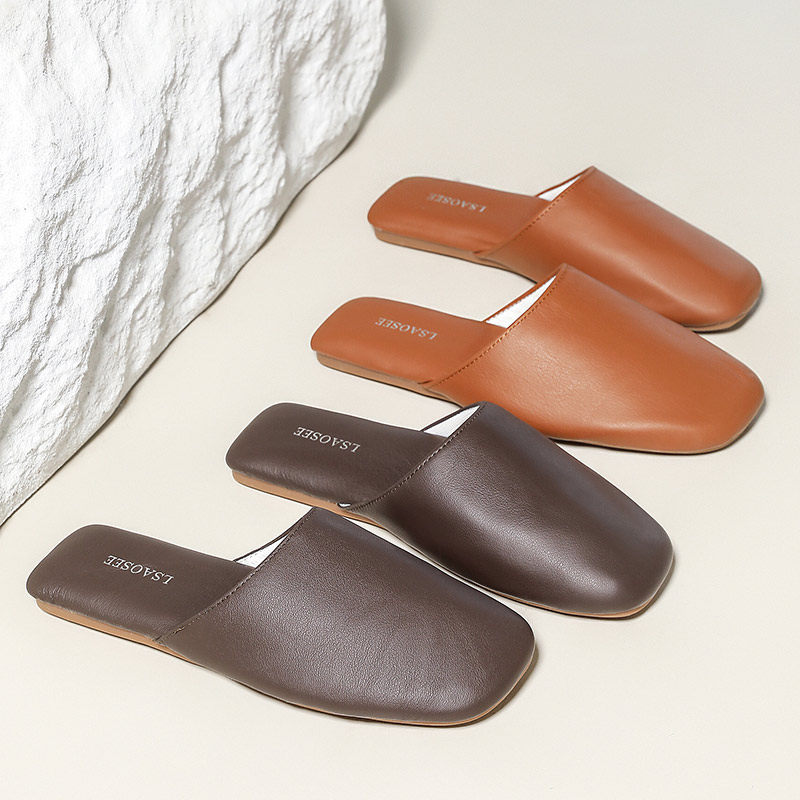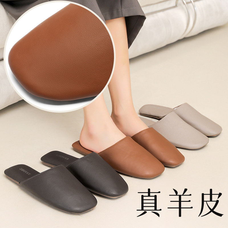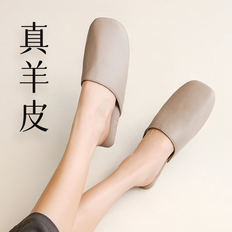 百搭男 女室内防滑牛筋底真皮时尚 轻奢高级感包头小羊皮夏季 凉拖鞋