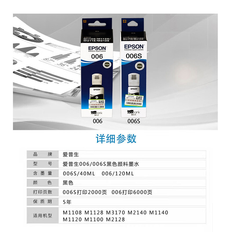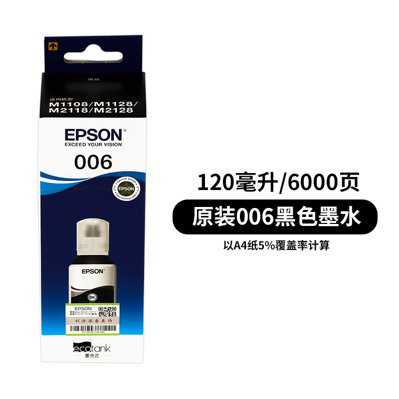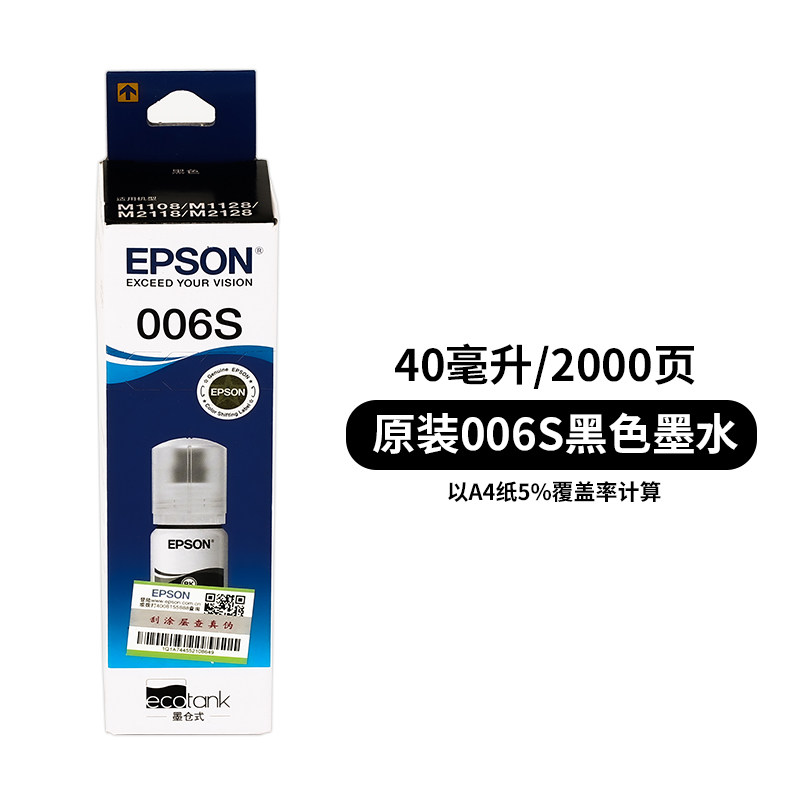 M2118 爱普生原装 M1128 006s黑色墨水大容量M1108 2128打印机 006