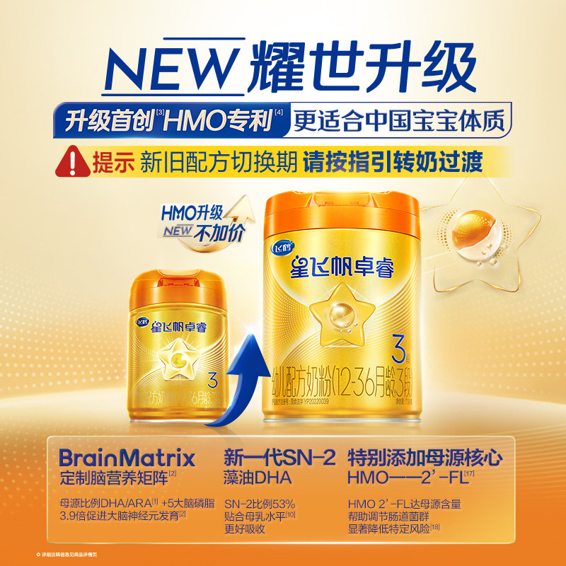 6罐5HMO专利OPO 飞鹤星飞帆3段婴幼儿配方牛奶粉700g 官方正品
