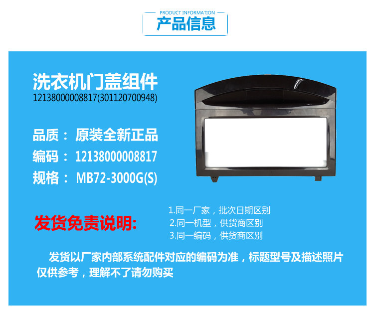 洗衣机配件上顶门盖MB75 美 3000G F3000S 原装 6000DQCS 正品