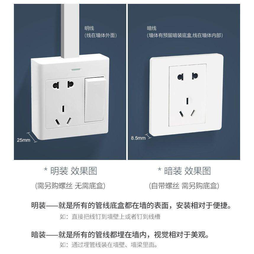 国际电工明装 开关面板明线明盒五孔插座超薄十五二十孔家用多孔位
