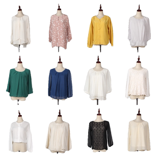 FC105古着vintage日制春夏中古日常休闲通勤韩版 雪纺上衣 淑女衬衫