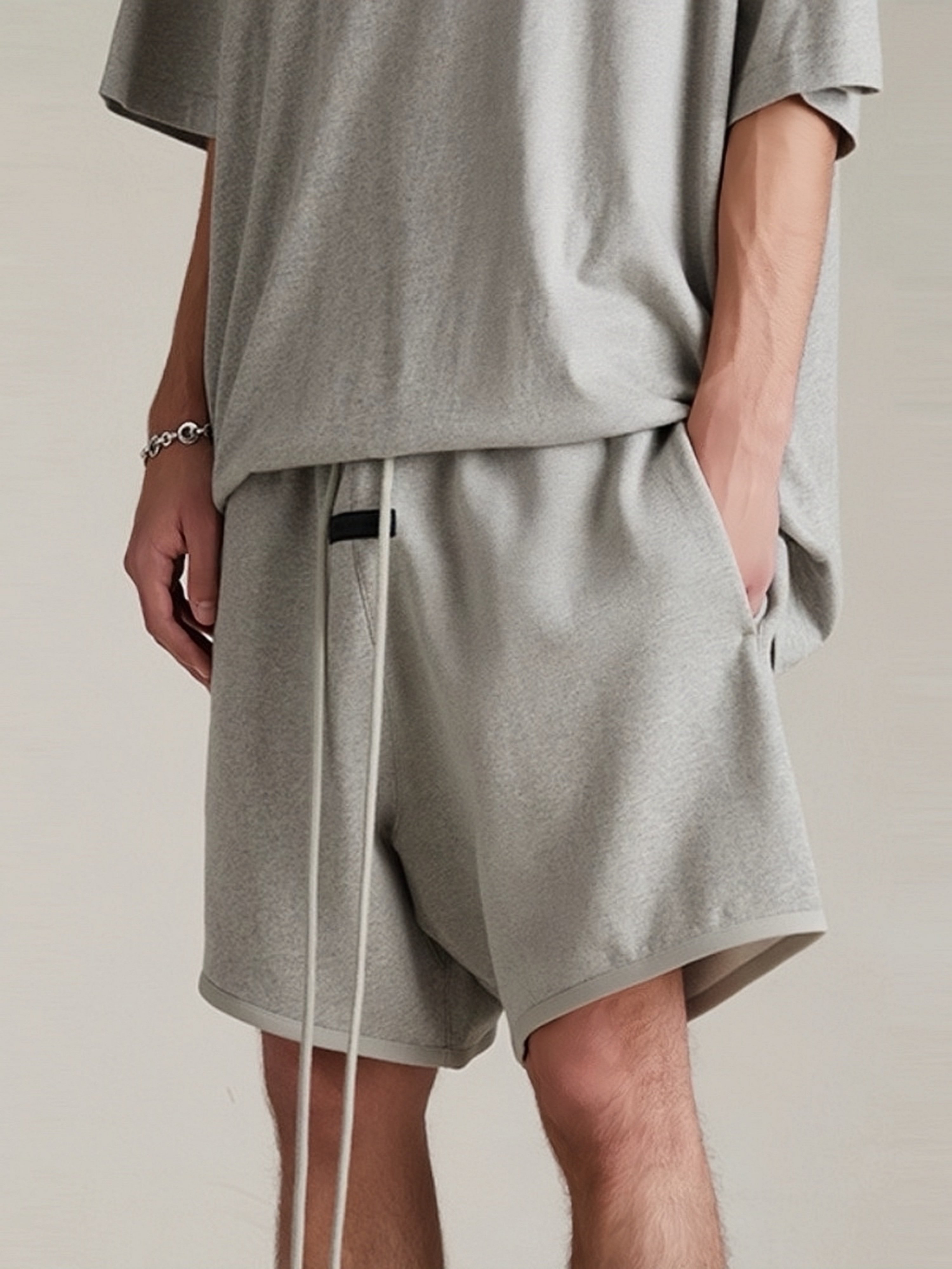 高街抽绳直筒运动裤 基础百搭纯色短裤 休闲款 PAPASLILMONSTER美式