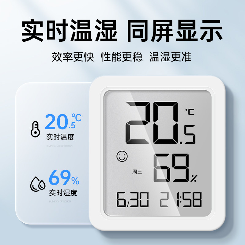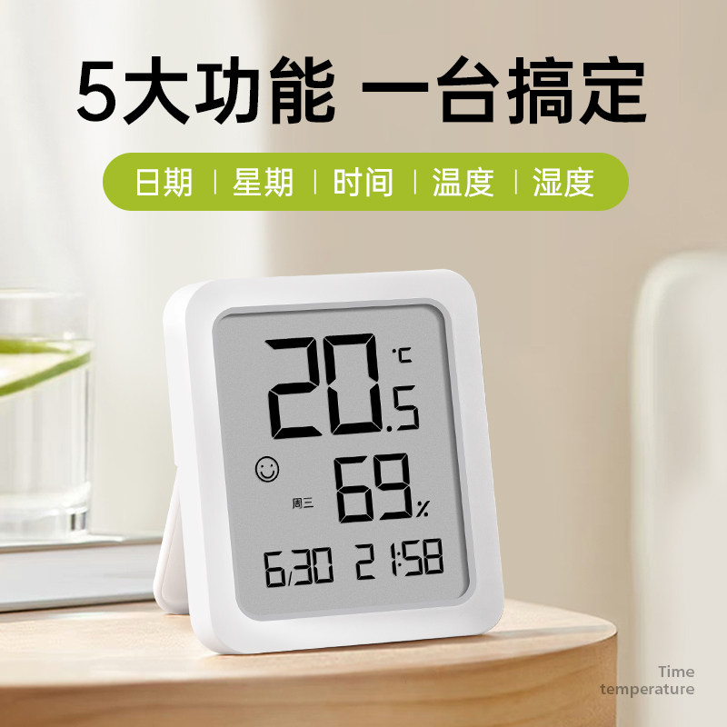 电子温湿度计家用室内高精度冰箱数显表带时间温度计婴儿房湿度计