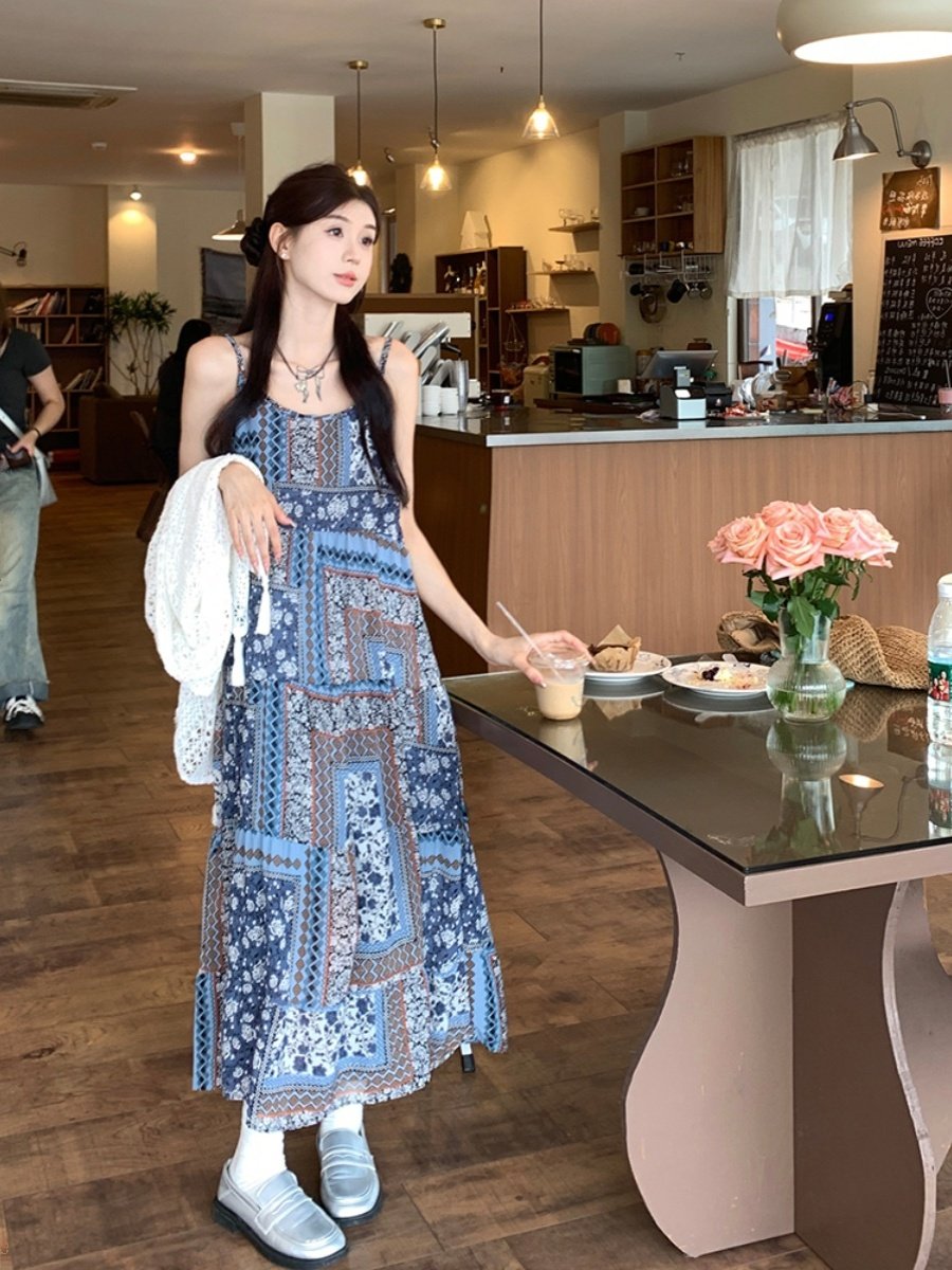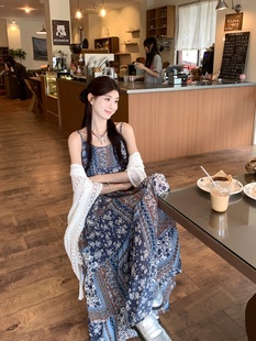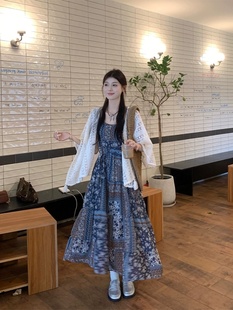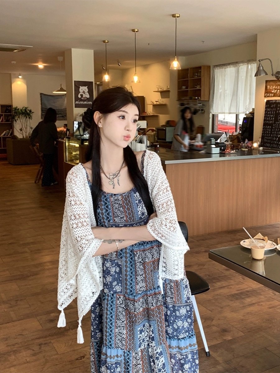 2025度假风套装 防晒复古连衣裙两件套 女镂空披肩波西米亚风夏季