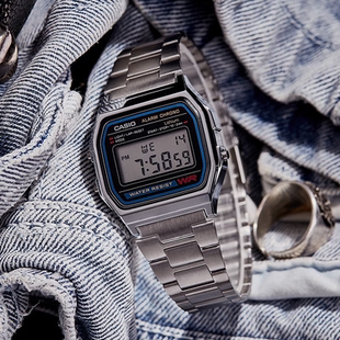 A159W 石英电子A158W casio卡西欧手表男士 复古小方块银表学生女款