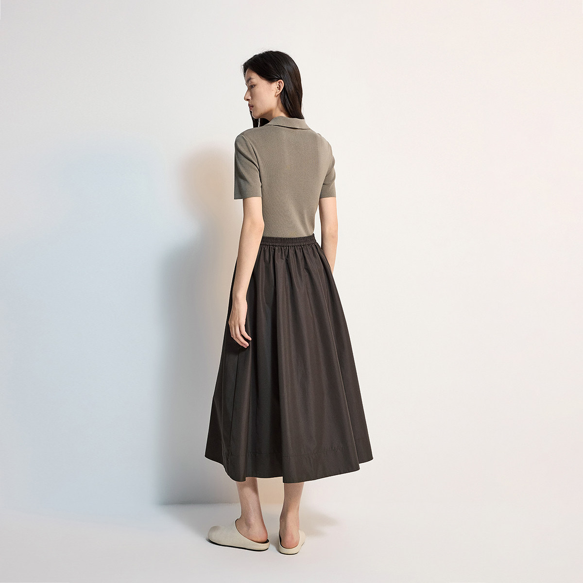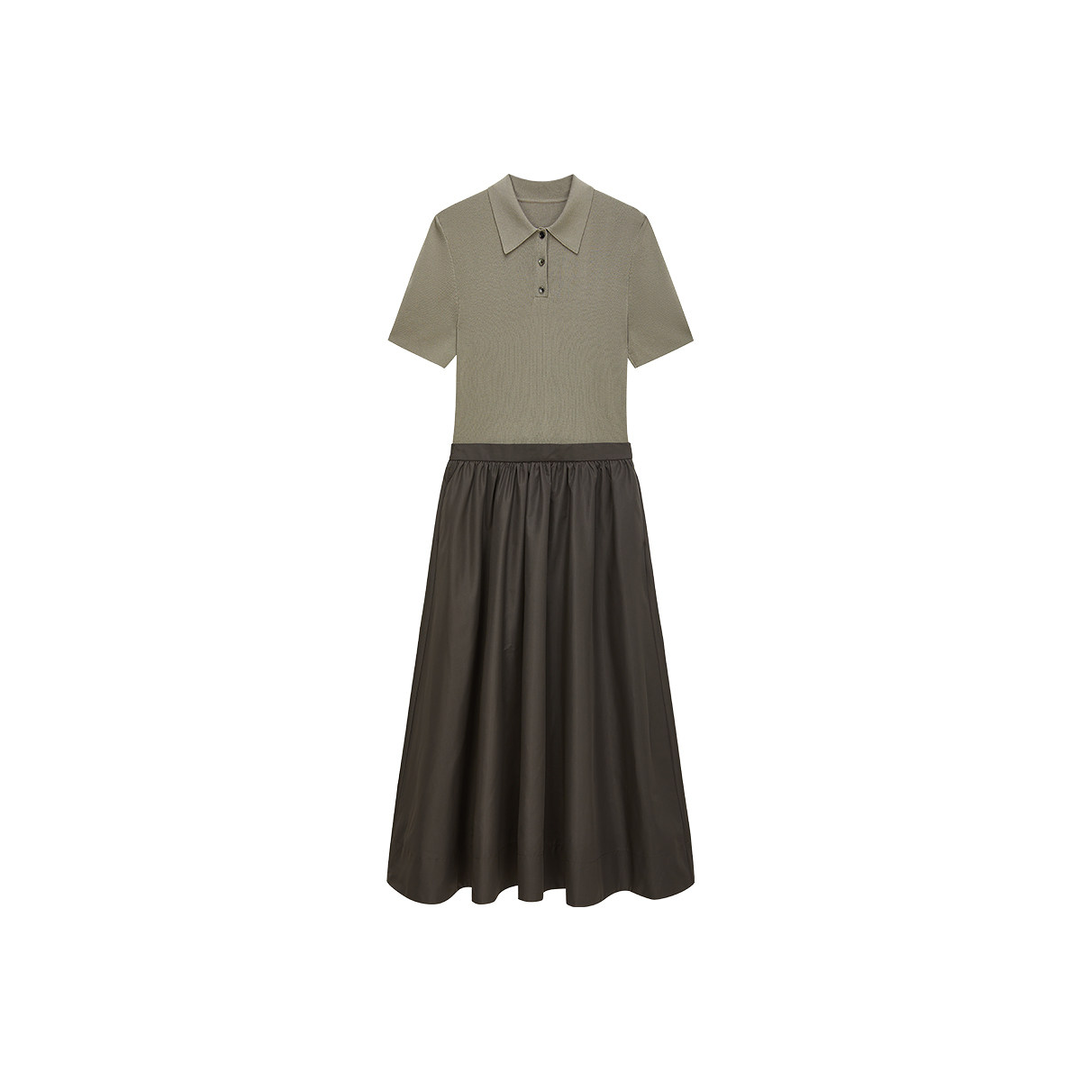 OCHIRLY欧时力 长裙 polo领假两件针织连衣裙女春大摆伞裙醋酸短袖