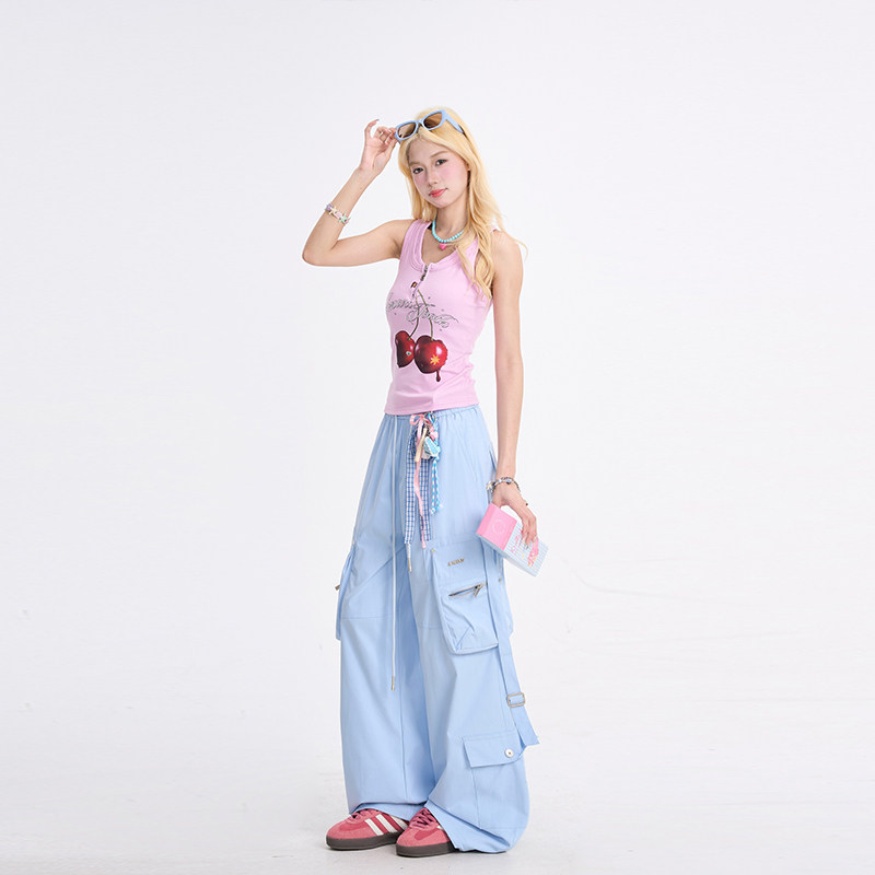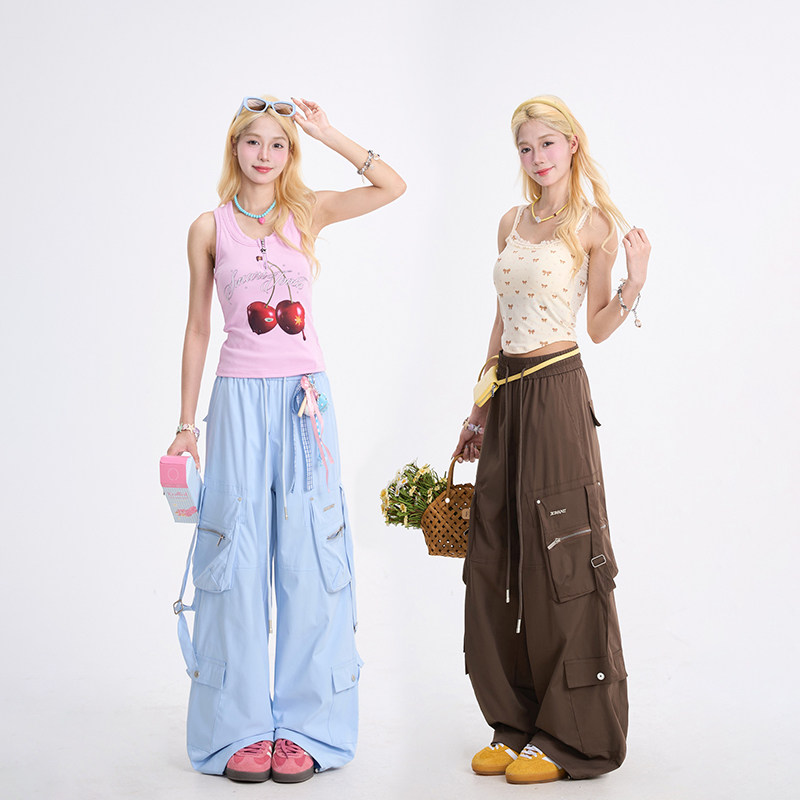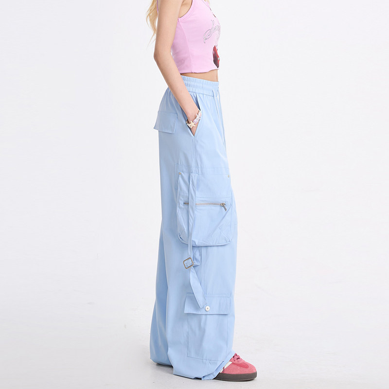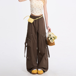 多口袋休闲阔腿直筒裤 NERESUM工装 子美式 女潮牌户外运动速干裤 裤