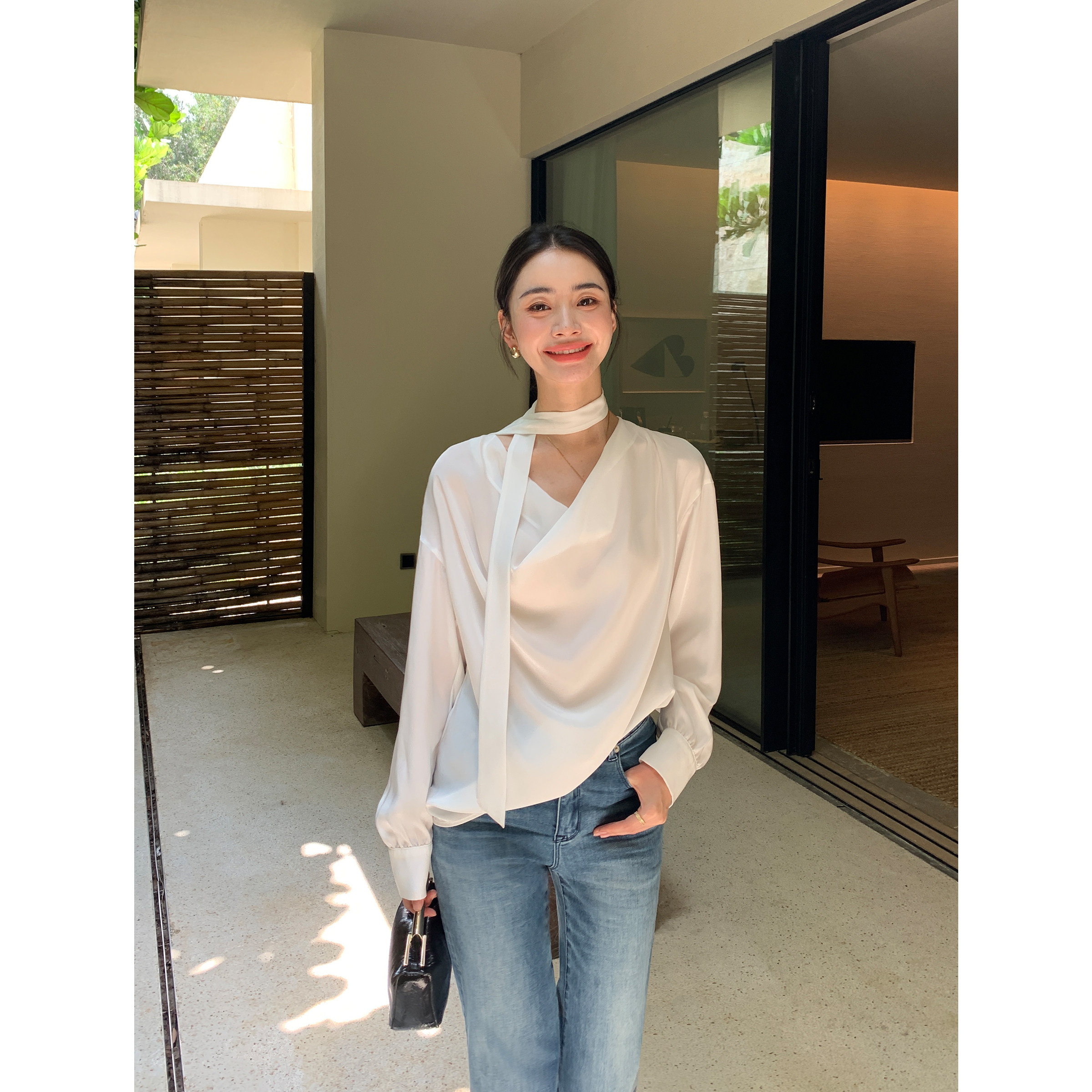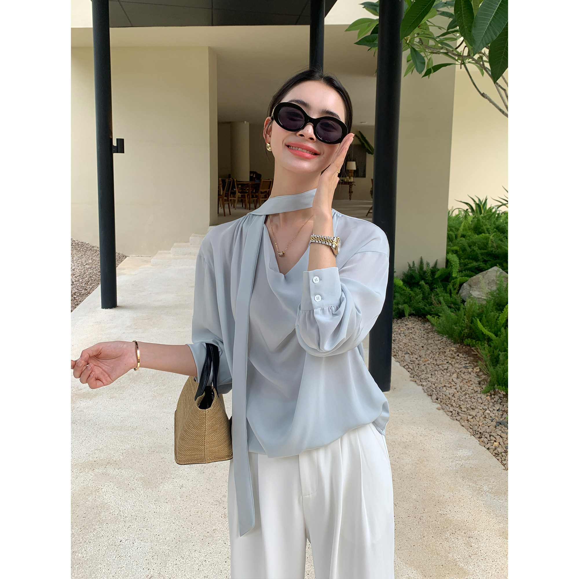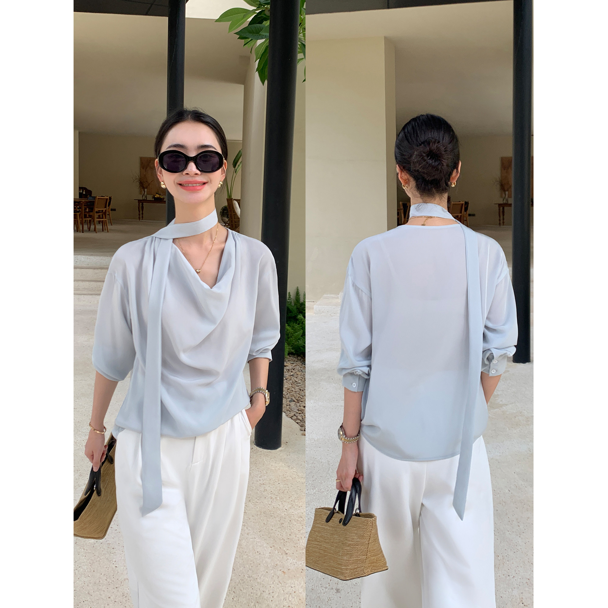 高级感丝滑荡领衬衫 华贵矜持 女飘带上衣职场通勤衬衣 Lin Maven