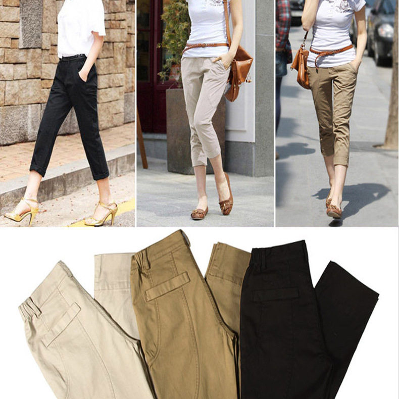 百搭休闲松紧腰显瘦拼接七分工装 裤 薄款 夏季 子女七分2025新款