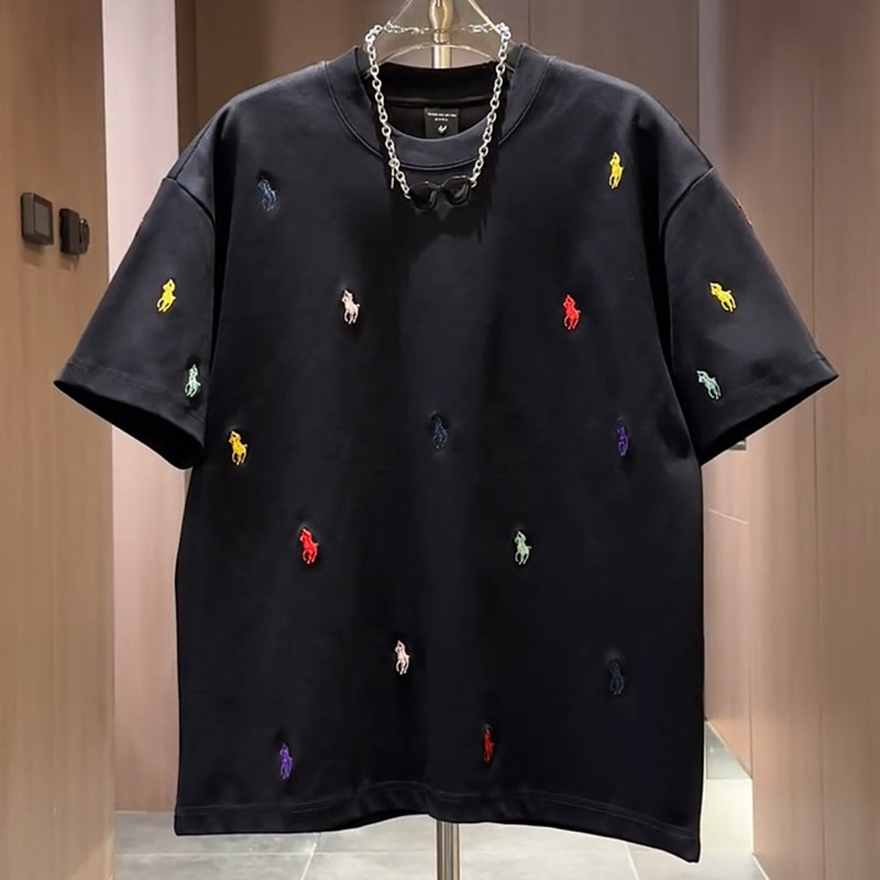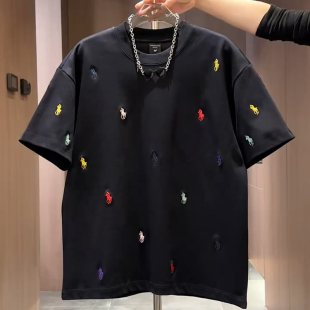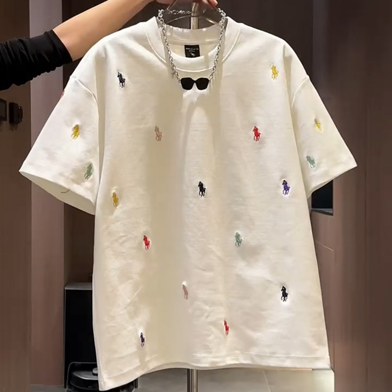 夏季 彩色战马重工刺绣短袖 T恤衫 宽松帅气高级感半袖 上衣男 t恤男款