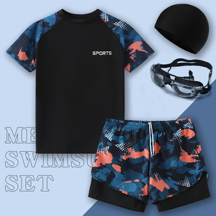 温泉游泳装 泳帽泳镜三件套泳衣防尴尬2025新款 备全套 男士 回力泳裤