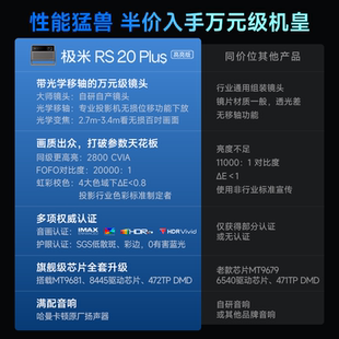 全国补贴 Plus高亮版 立减20% 三色激光变焦移轴4K家用投影仪超高清高亮度投影机 极米RS