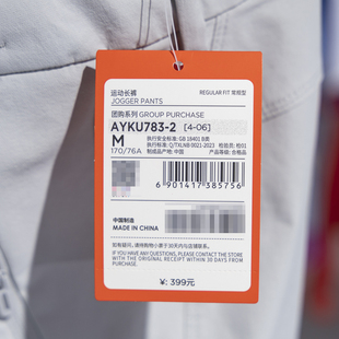 男子团购防泼水潮流百搭直筒休闲长裤 运动裤 AYKU783 新款 李宁冬季