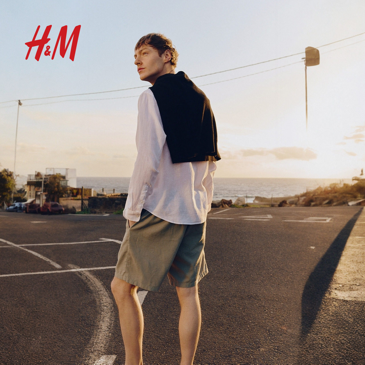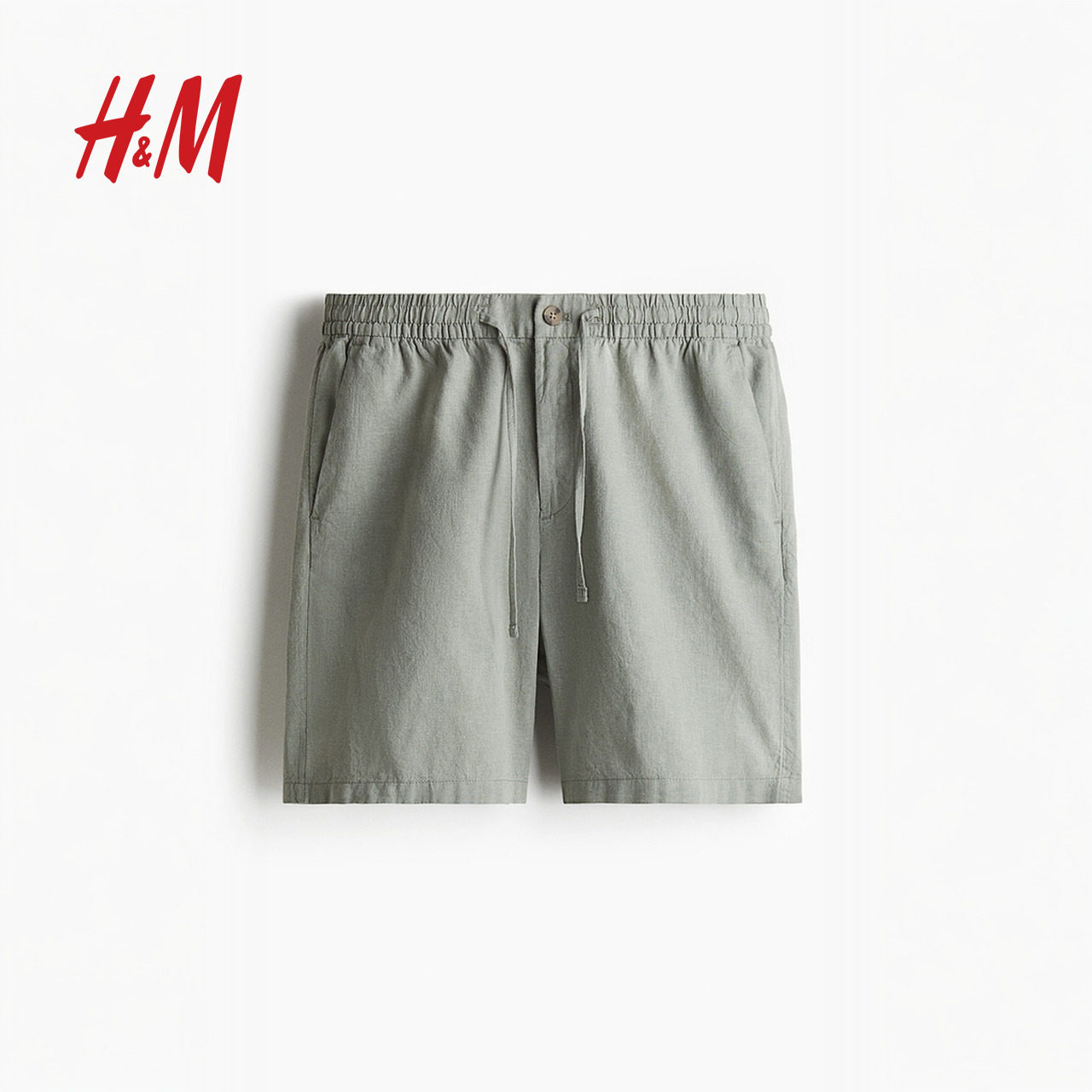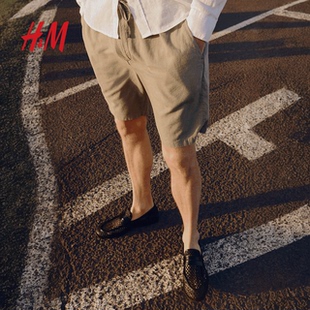 亚麻混纺直筒通勤松紧腰休闲短裤 子春季 1256418 裤 HM男装