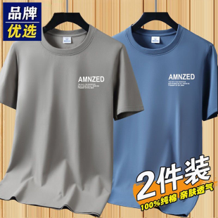 透气运动2025新款 100%纯棉夏季 宽松帅气t恤上衣 男士 品牌优选短袖