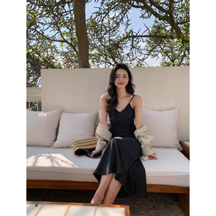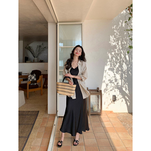 连衣裙气质垂感长裙 高级感缎面吊带裙女无袖 pusumede 优雅知性