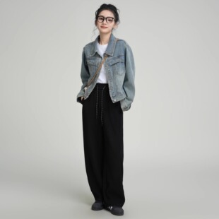 宽松上衣 POLO领牛仔褂夹克短款 韩国水洗蓝牛仔外套女2026春季 新款