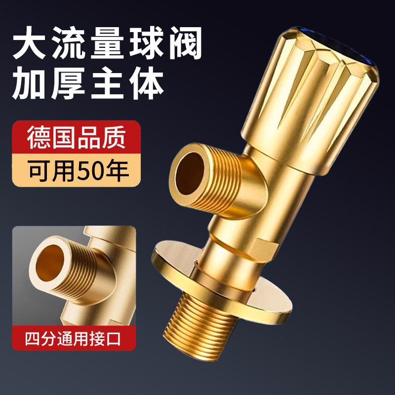 全铜加厚角阀大流量三角阀球形开关马桶热水器冷热水止水阀4分口