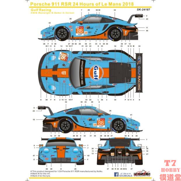 FLe SK24187 Gulf 2018 mans RSR 911 Porsche Decals水贴1