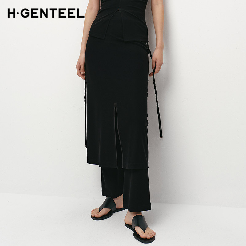 包边裙裤 女缎面轻奢开叉通勤休闲时尚 夏装 H·GENTEEL荷高25新款