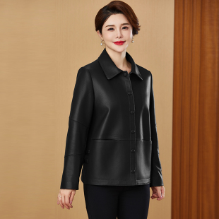 小个子妈妈装 海宁真皮皮衣女2026春新款 高端绵羊皮衣夹克外套短款