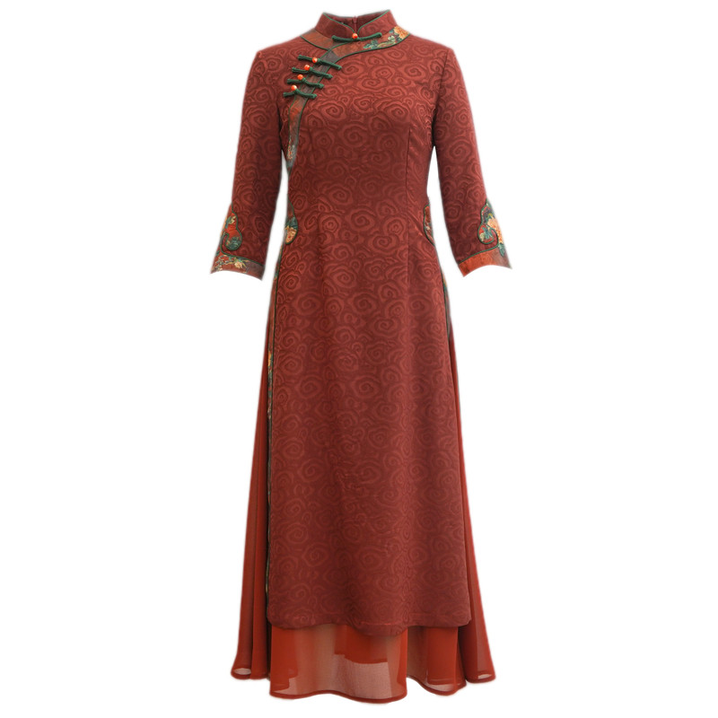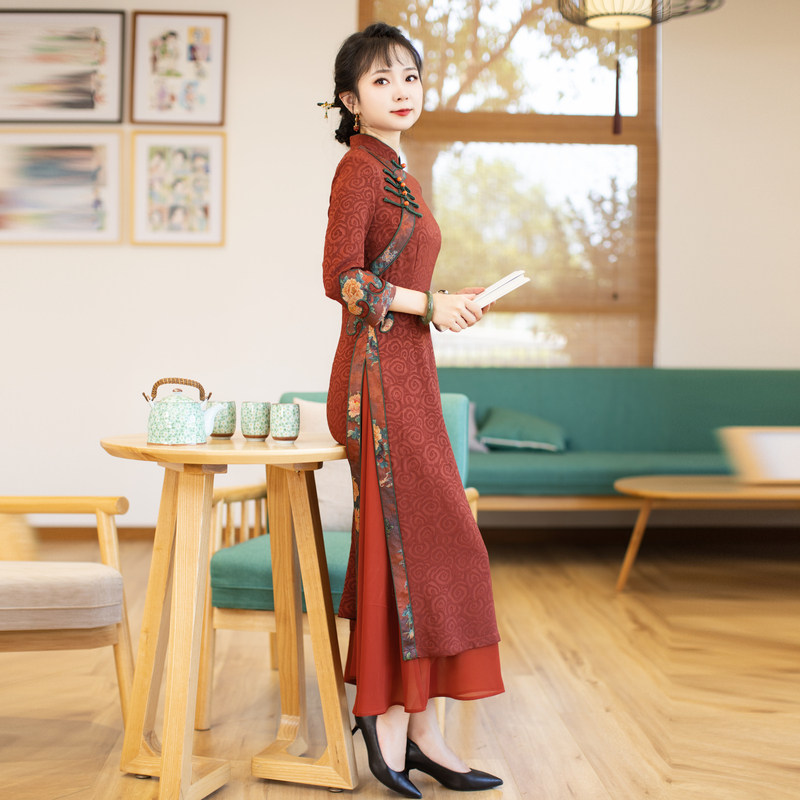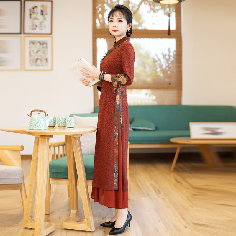 如意风奥黛新中式 改良旗袍女收腰显瘦日常中国风高端连衣裙23R159