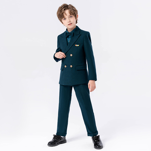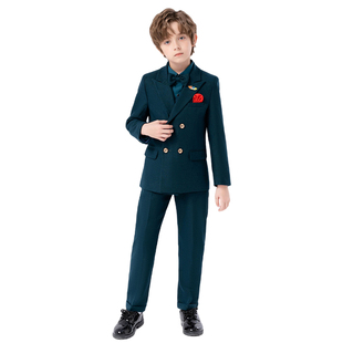 儿童小西装 藏青色亮片男童小主持人英伦风男孩钢琴演出服 套装